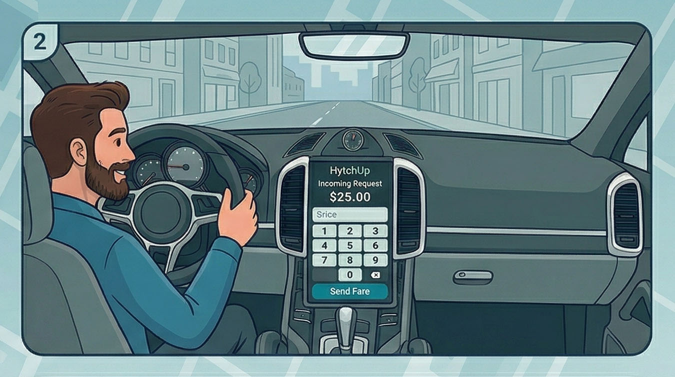 It is very simple. Your rider sends a request through your link or QR code. You see the details, reply with your price, and once they click "Accept," the ride is automatically added to your HytchUp calendar.